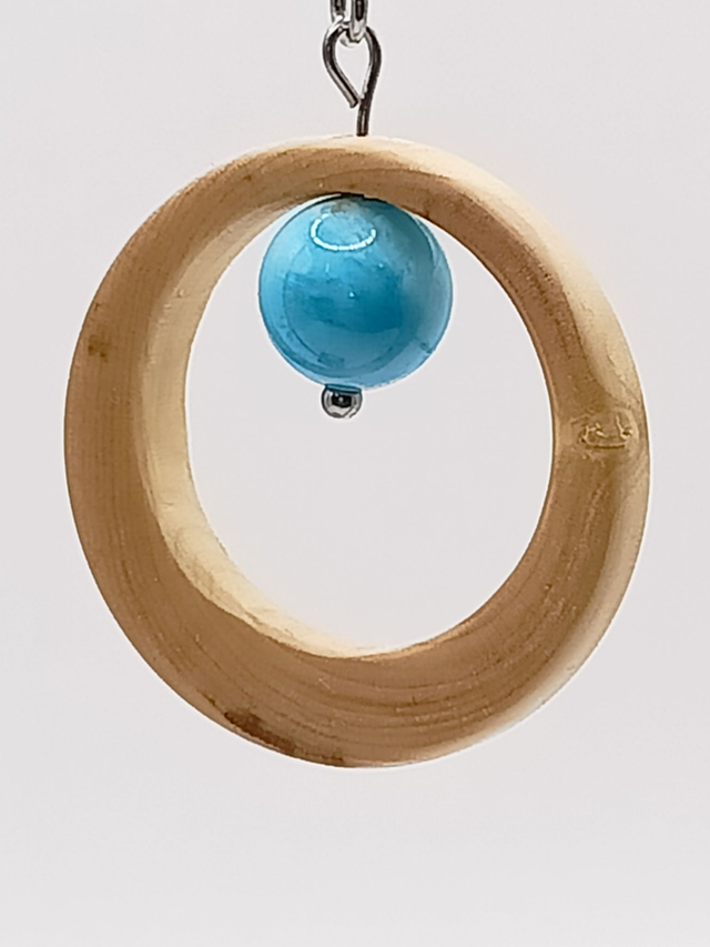 Matériaux : Bois de Buis, pierre Apatite, acier inoxydable argenté 316L (chirurgical et hypoallergénique), huile de lin