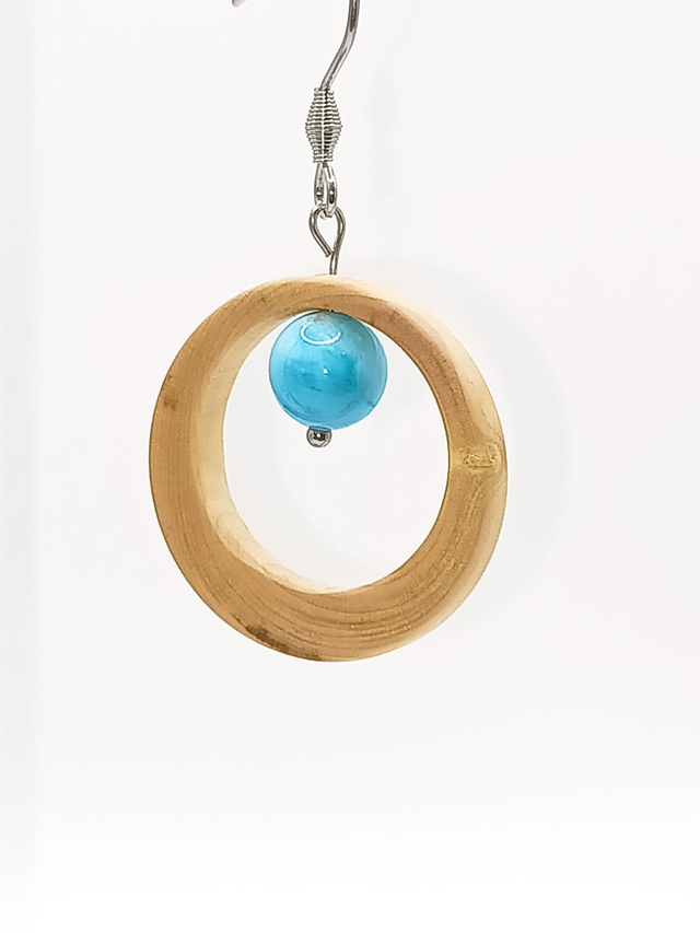 Des cercles de bois clair portant un souffle d'océan : ces boucles d'oreilles présentent de délicats anneaux en Buis, chacun orné d'une perle d'Apatite aux reflets aquatiques. Les apprêts en acier inoxydable argenté 316L (chirurgical et hypoallergénique) offrent une touche d'éclat. Finition naturelle à l'huile de lin.