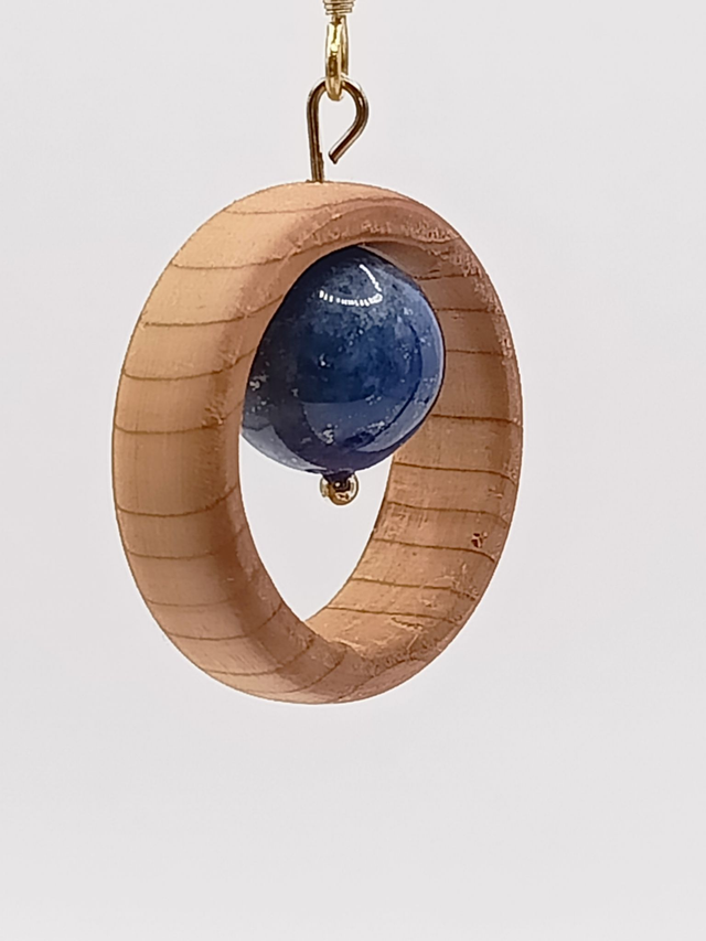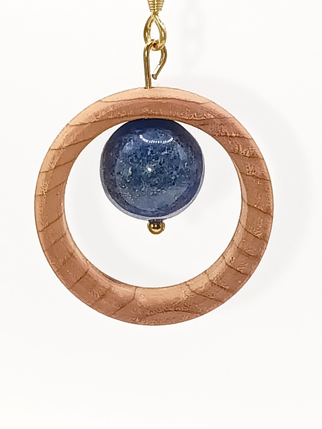 Boucles d'Oreilles Bois If, Perle de Lapis Lazuli