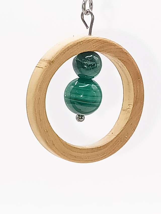 Matériaux : Bois de Buis, pierre Malachite, acier inoxydable argenté 316L (chirurgical et hypoallergénique), huile de lin