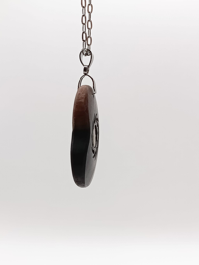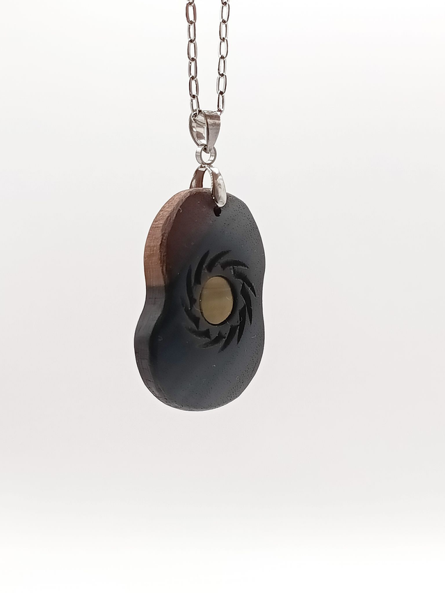 Collier, pendentif bois d'ébène, regard fauve de l'œil de tigre