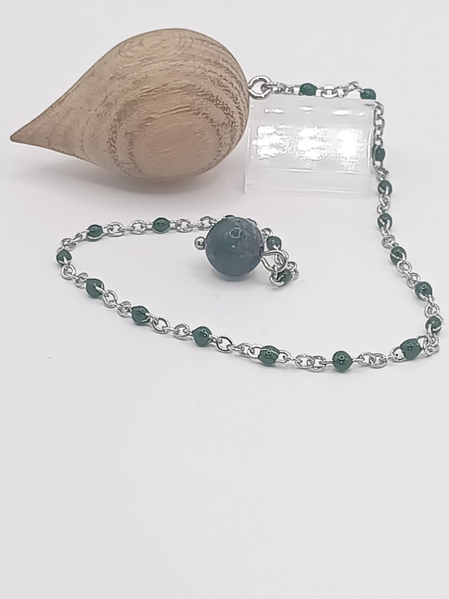 Pendule Robinier, Rubis sur Zoïsite, perles époxy Vert, acier Inoxydable