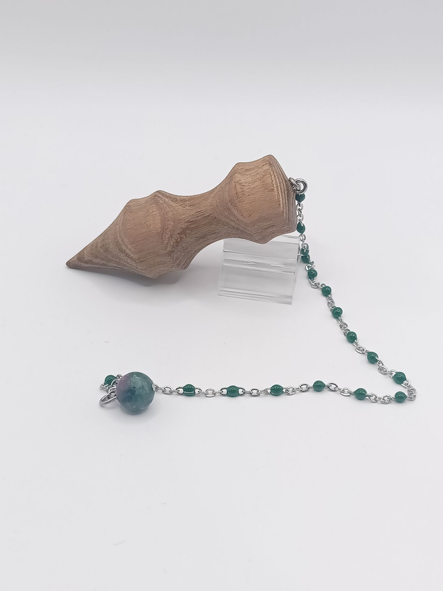 Un instrument vibrant aux couleurs de la nature : ce pendule en Robinier est monté sur une chaîne en acier inoxydable ponctuée de perles en époxy vertes. Il se termine par une perle en Rubis sur Zoïsite. Le bois bénéficie d'une finition protectrice à l'huile de lin.