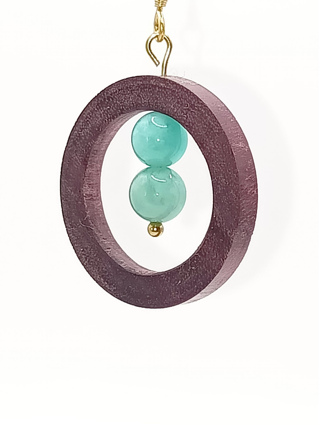 Matériaux : Bois Amarante, pierre Amazonite, acier inoxydable doré 316L (chirurgical et hypoallergénique), huile de lin