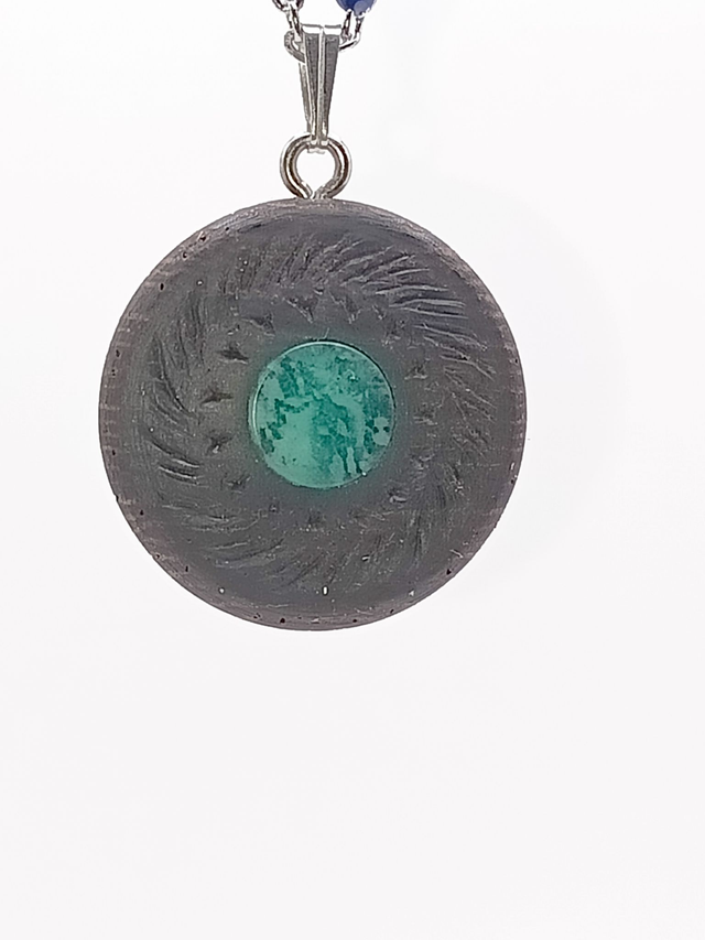 Collier, pendentif en Wengé, secret d'Amazonite